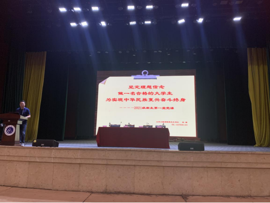 9月14日上午,土木工程学院党总支书记赵渊以“坚定理想信念,做一名合格的大学生,为实现中华民族复兴奋斗终身”为主题,紧密结合党史学习教育为全院460余新生、部分教师代表上专题党课。