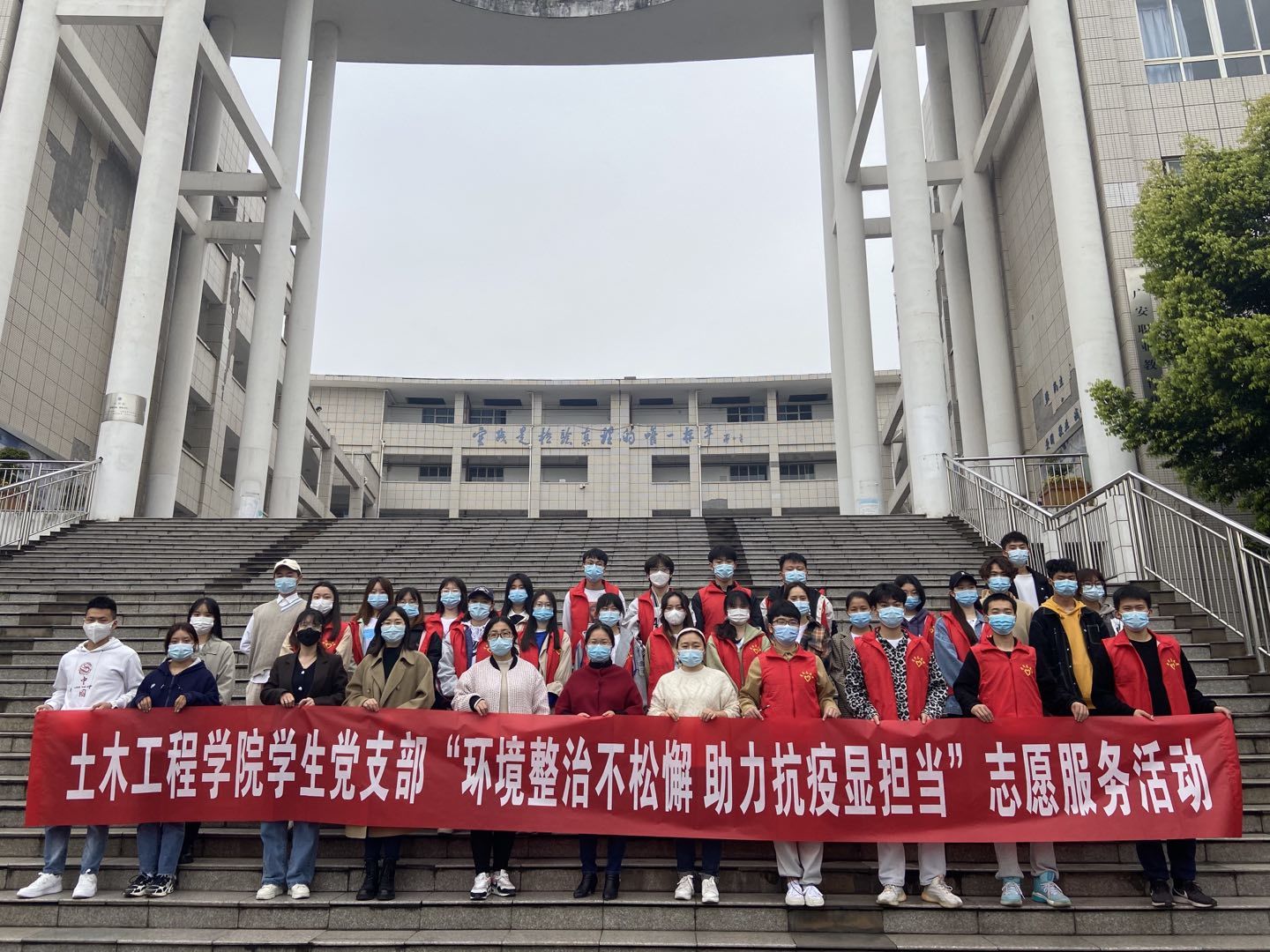 3月27日,土木工程学院学生党支部开展了“环境整治不松懈 助力抗疫显担当”志愿服务活动,学生党支部全体党员及第28期入党积极分子参加了此次志愿服务活动。
