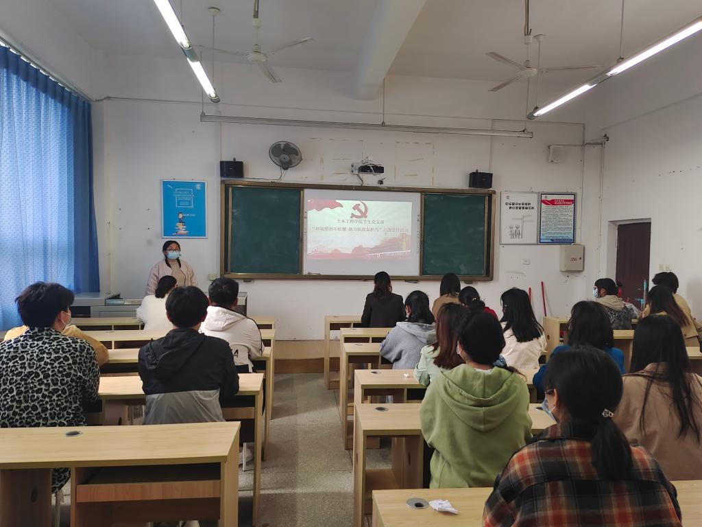 学生支部书记李雪芬首先带领大家全面学习党的十九届六中全会、省委十一届十次全会及广安市第六次党代会精神,通过对三次会议的深刻分析,指出作为新时代的合格共产党员必须牢记使命与担当,同时也指出今年中国共产党将召开第二十次全国代表大会,这是党和国家政治生活中的一件大事,所有党员都应心怀感恩之心,发挥出党员先锋作用。随后,学生们在校内开展了志愿服务活动,尽己所能为抗击疫情贡献个人力量。活动中,志愿者们冒着细雨,进行了疫情防控知识宣传,引导同学们科学佩戴口罩、不在公共场所吸烟吐痰、不在教学区域大声喧哗、不说脏话等,同时还对负责区域进行了垃圾清理。