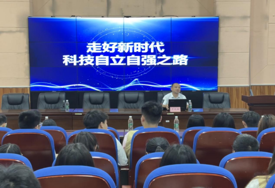 罗龙海从世界科技竞争日趋激烈、我国科技机遇挑战共存以及加快科技自立自强步伐三个方面进行了讲解,授课中引用了大量新词热词、数据和科技产品,让同学们感受到了科技立则民族立,科技强则国家强的使命感。他提出,青年一代要有科研精神和创新意识,要大力弘扬科学家精神,勇攀科技高峰。