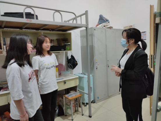 在走访中,教师们为同学们科普了疫情防控的相关法律法规,要求学生要遵守学校的疫情防控规定,引导同学们要认清疫情防控的复杂性、艰巨性、反复性,不麻痹、不厌战、不松劲,要树立坚持到底、一鼓作气的斗争理念,为疫情防控筑牢坚实的思想防线。教师们还关心同学们的学习和生活情况,并排查了宿舍安全隐患,提醒同学们要提高安全防范意识,强调要严格遵守法律法规和规章制度,切实维护自身权益和生命财产安全。