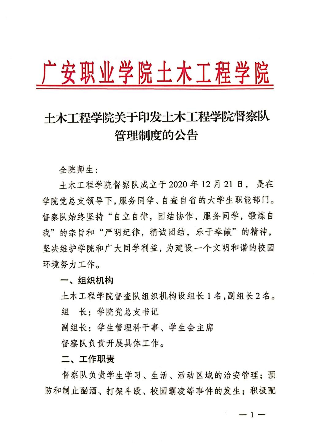 土木工程学院关于印发土木工程学院督察队管理制度的公告