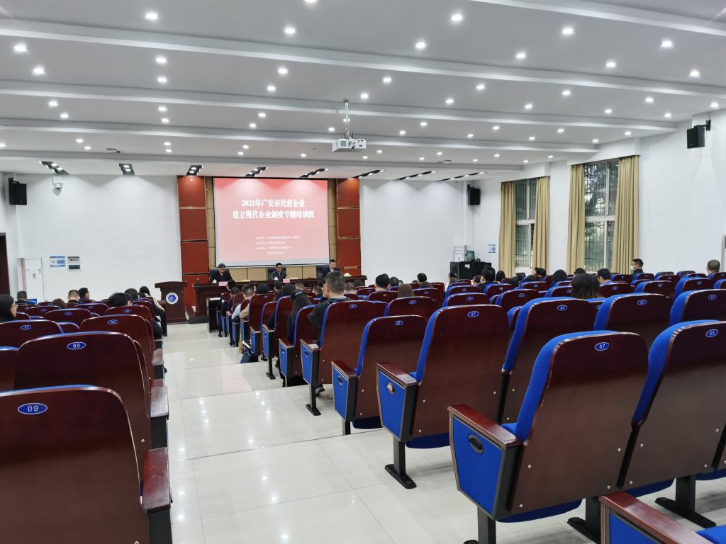 10月29日,广安市民营企业建立现代企业制度专题培训班在九游体育官网先圣厅隆重举行,来自全市各地80余名民营企业家代表参与培训。本次出席会议的领导有广安市经济信息化局四级调研员吕通兵、九游体育官网校长助理李晓强。